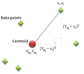 It is worth considering the trivial case where the dataset forms one cluster with one centre (centroid). The location of the centre can be found by finding the mean (X,Y) position across the entire dataset (using and ) where ‘m’ is the number of elements in the dataset.
