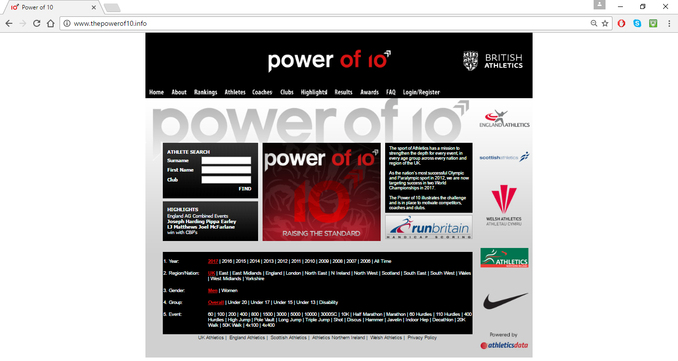 The Power of 10 is a website which publishes race results for amateur and professional athletes participating in UK events. The website provides search facilities (i) to list all the members of a registered athletics club or, (ii) for a single, named athlete, to display the events they participated in and their performance. The website does not provide a facility to list the events and recorded times for all athletes in a club.